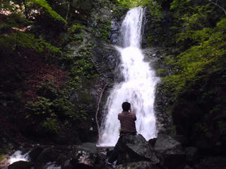 滝を撮影するキャメラマン組長氏。