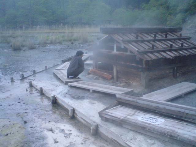宿の裏手側に温泉がぼこぼこ湧いている場所がありました。