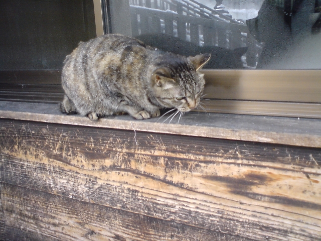 湯畑すぐ近くの居酒屋さん。窓の外にヌコ発見。