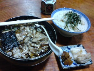 DAIはまいたけうどんセット、AYはそばを注文。