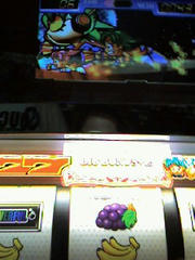 T店のサイトで連日ヘコんでる7カフェを2台ほど発見したので、その2台に狙いを絞っていきました。942番台に着席→リセモ×。938番台へ移動→リセモ×。隣の台へふらっと移動→リセモ○。3台目にしてやっと初BIGをひいたものの、これが単発。150Gを過ぎたトコで再び942番台へと戻ります。本日の投資は全部で20k。そして、残り1kというキワドイところでBIG!そしてこれが1G連を含め、B8R3の11連チャン!3000枚出して満足なんで、ココで終了~。